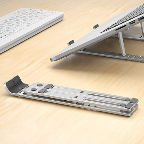 Take improved well-being, on the go. A foldable design (and included storage bag) means you can fold, store, and take this laptop holder with you anywhere. When folded, the laptop stand measures just 9.4 x 1.75 inches.