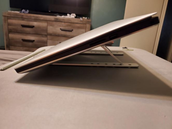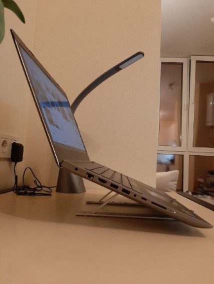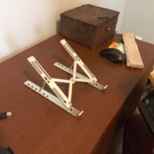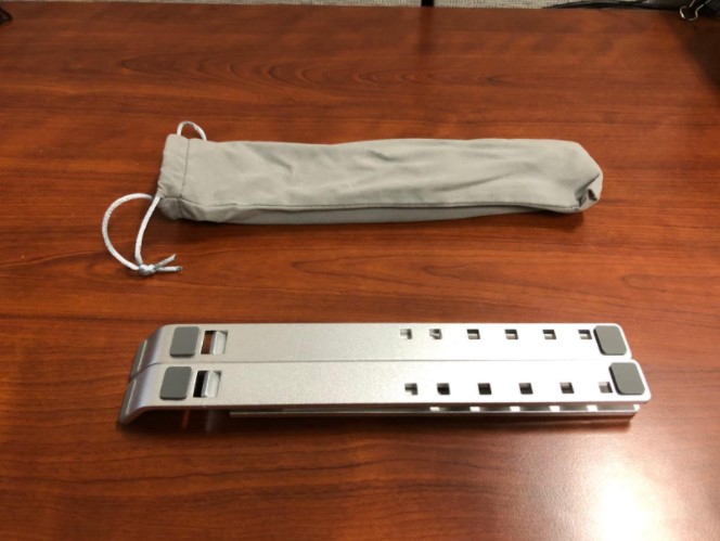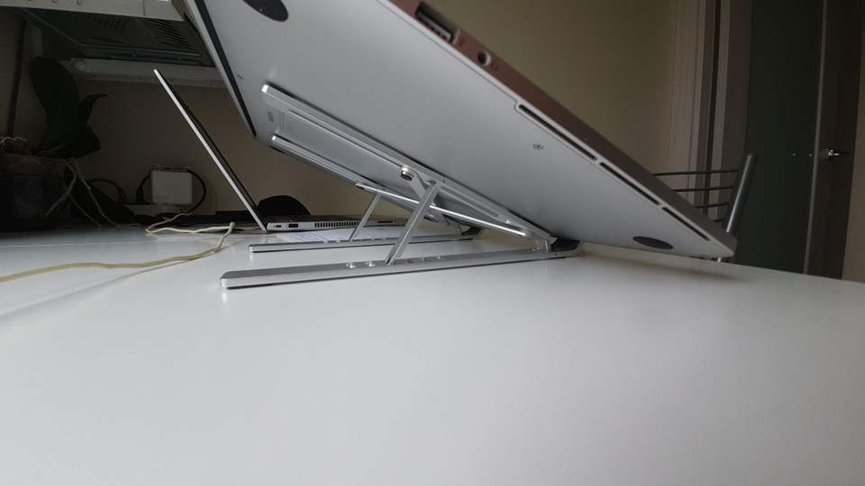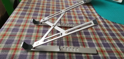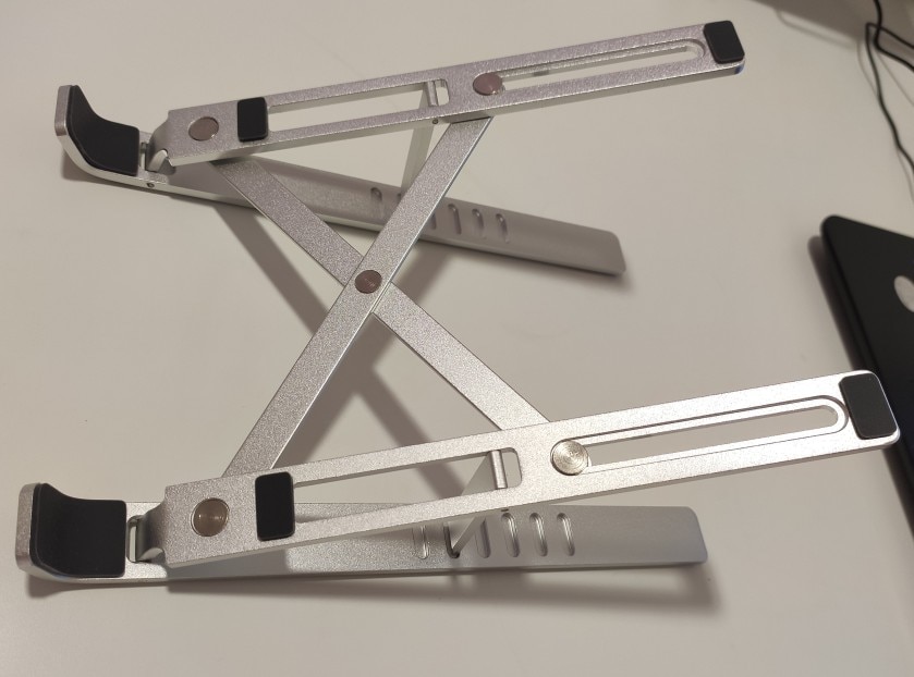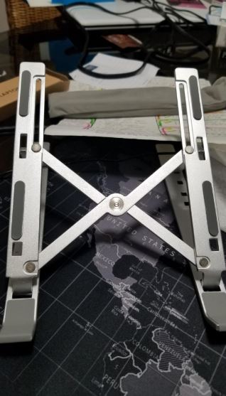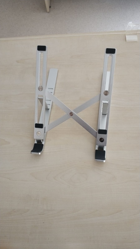 I really like how durable and simplistic this is. It weighs almost about nothing it comes in a cute gray pouch. There's no parts to assemble it's durable Its made of metal. You can use it for more than just your laptop. It works well with a tablet, a book, and I'm sure you can even use it for landscape mode for a phone, you don't have to open it all the way for it to work. It's very versatile and definitely a must-have for trying to ventilate a laptop and get a ton of more different types of uses at it while you're on the go or in the kitchen. Absolutely must buy!