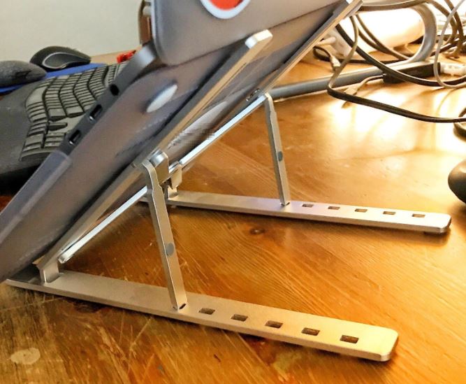 My neck has been bothering me when using my laptop, since I spend hours video editing. This little stand has been a lifesaver. I even take it to coffee shops and other places I work. The stand folds up very small and is nice and durable. It has really helped out and my neck no longer is in pain. I did get a bluetooth mouse and keyboard that I use when it is propped up on the stand.