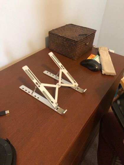 I originally bought this for my husband to setup his new office during quarantine. However, when it arrived, I decided to test it out and, let’s just say, he had to wait an extra two days before he could get his own stand delivered I’ve been using this laptop stand for a couple weeks and I love it. I don’t have to hunch over my laptop as much or look down at the screen, which I know is helping my (already uncomfortable) back. I also love that it adjusts to different heights and, when I’m not using it, it can easily collapse! My husband loves his as well and is an excellent addition to our new workspaces. 10/10 recommend!