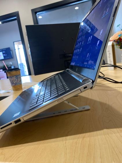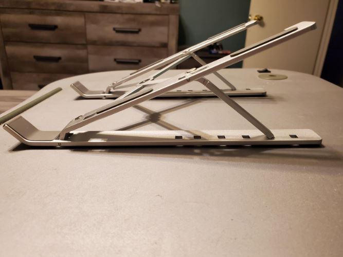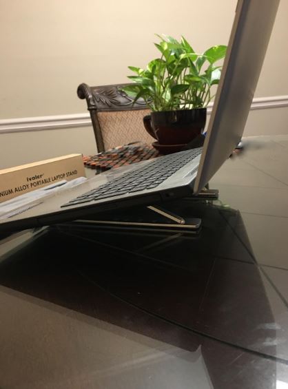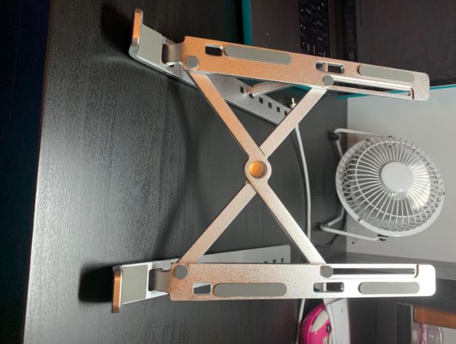 I have a stand for my laptop that a friend's dad made me a long time ago. I left it at the office at the beginning of the COVID stay at home orders thinking it would not be gone that long. here we are 60 some days later and I still didn't have a laptop stand. I had been searching for one similar to the one I left at the office for weeks now and I am so so glad I finally found this stand. It is super lightweight, it is really easy to set up, it's sturdy, and I absolutely love that you can adjust the angle of your laptop and I like that it keeps your laptop on the desktop and not up super high like most of the stands I see. I think I like this one more now than my favorite one at work.