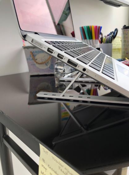 I never considered using a laptop stand until I saw an ad so I decided to try it. I can't believe I went without one all these years. What a difference in my posture and hand position when typing. I just love it. And there is literally nothing to positioning it anywhere or folding it up to take with you. Thank you.