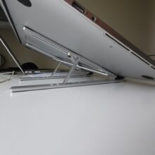 I never thought I’d need a laptop stand, but after getting this and using it I can see why so many people use them. This stand is extremely light but really sturdy. The rubber feet hold your laptop in very well and keep it from moving on your desk. I’m using it with a 2012 13” MacBook Pro and it fits perfectly. An added bonus is that it keeps the laptop much cooler and less likely to overheat. It has six different height levels. The second to lowest is the best in my opinion. It folds up nicely and comes with a faux-velvet drawstring pouch. Overall I’d highly recommend this for using as a portable laptop/tablet stand. Amazing value for the price.