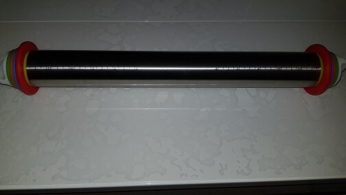 I’m going to go ahead and give it 5 stars even though I haven’t used it yet. The reason for the 5 stars: – The rings are made of substantial, hard plastic. I was afraid they would be flimsy. They are not. – Other comparable products have 3 rings, this has 4. The 4th lets you make pizza dough (sizes are 1/16″, 1/8″, 1/4″, & 3/8″). – You can’t fill it with water (like another product does) but you can put in refrigerator which will make working with dough better. The stainless steel should hold the cold quite well. – I mostly got it because I make cookies for the grandkids and getting even dough thickness makes baking more consistent (less burned cookies). I think it will be great for that. – Very substantial roller. I expect you can exert substantial pressure on dough when rolling (like when dough may still be cold and a little less pliable than you expected)