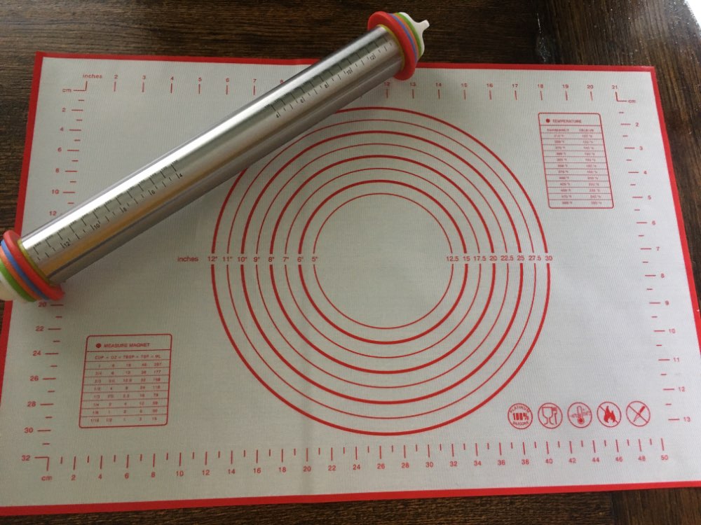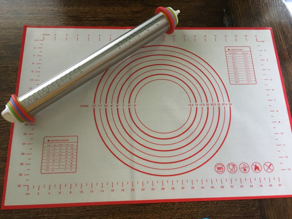 I love this rolling pin! It makes rolling my pie crusts and cookies so easy and they come out perfectly even every single time. The mat is a nice bonus coz it gives me a specific working area and the measurements printed on it are helpful too. I highly recommend it!