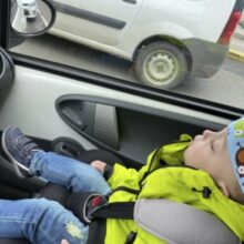Need to put it on the car seat and when the child falls asleep just snap around their foreheads, otherwise it wakes them up. But definitely proves its purpose.