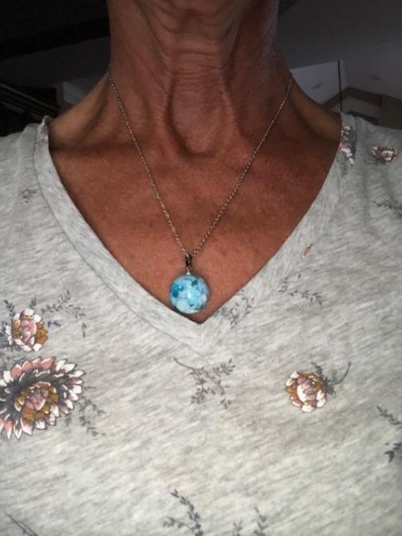 Beautiful pendant - just like described it’s like looking at a pretty sky with clouds. It’s a unique piece that gets compliments every time I wear it.