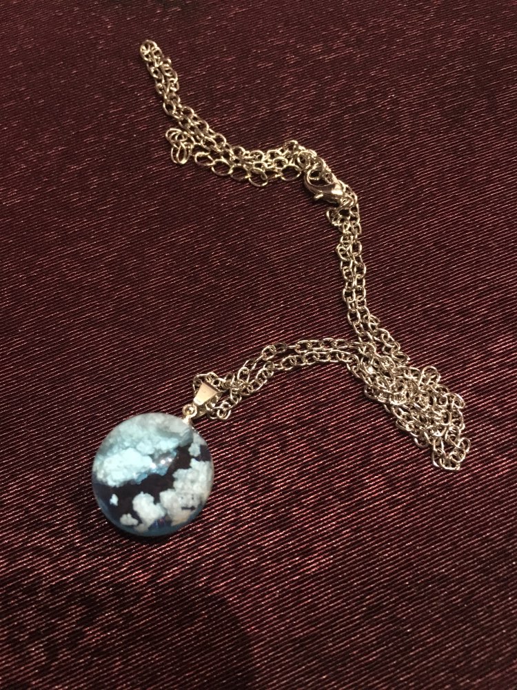 This is a gorgeous statement necklace. You can dress it up or down and there's so much to look at in the clouds. It's calming and peaceful.