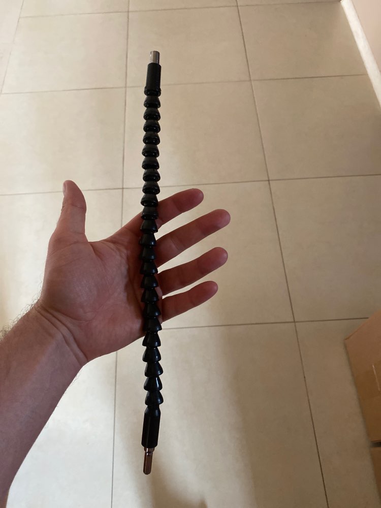 It can be flexible, it can be bent to any shape. Lately I've been drilling pictures and tables, when I didn't have this extension bit drill, there were screws that I was very hard to drill because I didn't have the right position. Now when I'm not in the right posture, I can still drill very easily and comfortably. It is very sturdy, I fear it will slip out of the drill but not. It works better than I thought and expected. In general there is nothing to criticize.