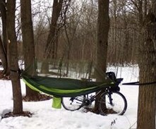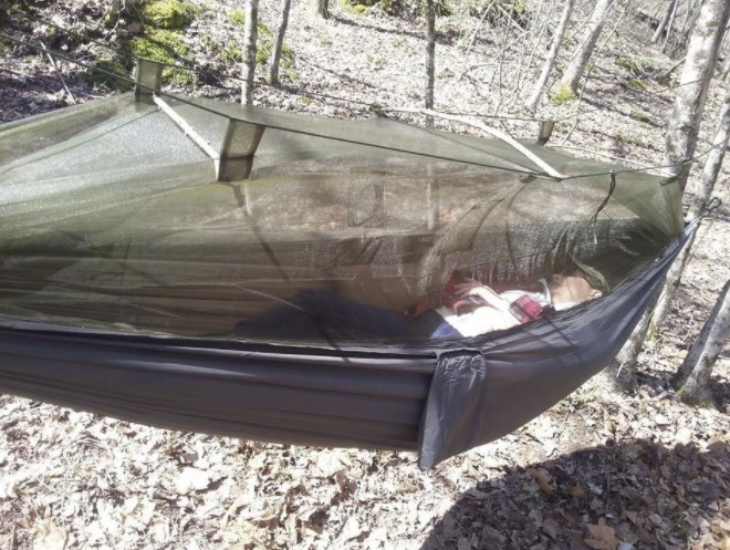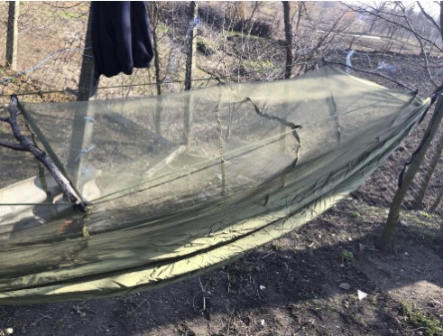 I do a lot of "bivouac" camping (courtesy of the Army) and dont usually have space to pack any sort of tentage other than a poncho so I thought I would give this a try seeing as how I've had a lot of back problems over the past few years. I tried it out a couple weeks back for the first time during a field exercise in a heavily wooded area surrounded by water. The mosquitos were out with a vengance so it was nice to be able to jump in this at night and not have to worry about them. Setup was easy and thanks to the other reviews I knew not to tie the net off too high so it didn't tear. I ended up connecting the net strings to bungee cords to give them a little flex. I would definitely recommend this hammock to anyone who does a lot of backpacking. It tears down and packs away into the connected bag very easily (unlike any tent I have ever owned).