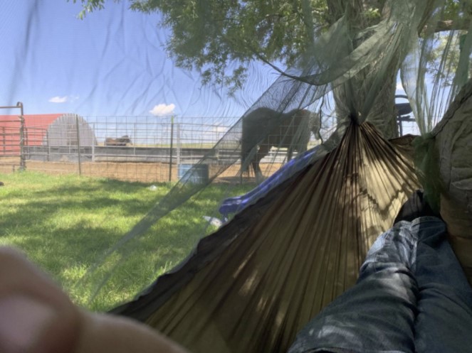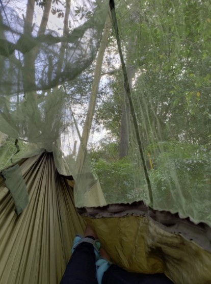 I love the netting that zips around you to keep the bugs away. The hammock is comfortable and sturdy.