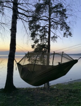 Used this hammock for 4 nights in the Olympic Nation Park, it was light, easy to set up, and very comfortable. I’d give it 5 stars but the tree straps that come with it are a little jinky and too short for most trees in Western Washington. Before I went on my trip I ordered different 20’ long straps.