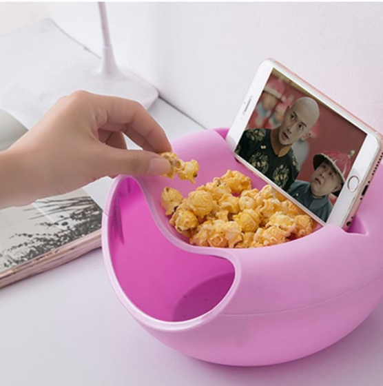 Best idea ever and perfect for both holding your phone and eating snacks.