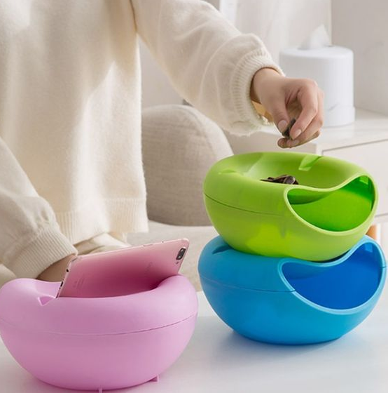 Its perfect for eating sunflower seeds which is why I got it for my mother who is a sunflower seed addict! The only thing that I didn’t like about it is that it is two levels that connect (the bowl in the bottom and the phone holder and smaller bowl in the top) did not like up and have a weird hanging edge that sticks out. Nevertheless it is still useful and a great gift which is why I’m giving it 5 stars!
