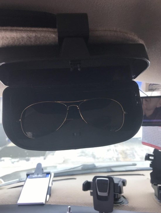 Best place for my sunglasses in the car. Easy to reach yet out of the way.