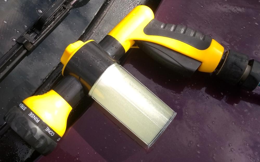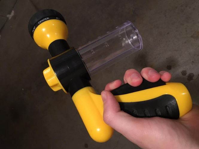 I used this to wash the exterior windows on my house, and it made the job quick and easy! Attached to a regular garden hose with no problem. I love that I can adjust the soap to water ratio. After cleaning the windows I used diluted bleach to wash moss and ick off of a painted concrete patio, then after a thorough rinsing I used it to spray vinegar/salt solution over all the cracks in my driveway to kill weeds. Tomorrow I'll probably just add some regular dish soap and wash my car. Some reviews said they had issues with leaks, so I was expecting the seal to be only so-so but I had no issues whatsoever. Another cool feature is that when you pull the "trigger" it locks in the open position so your hand doesn't cramp up when using this for extended periods of time. When you're ready to close off the water flow you just pull the trigger and it releases smoothly.