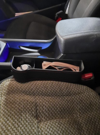 The seat gap organizer works great for what it's meant for! It has a nice little cup holder space as well as space for anything else you might want to put there like a phone, keys etc! While this space is meant to catch anything that might fall out of your pockets, it can also just be more space to put things there while on a road trip or a long journey! Personally, I always run out of cup holder space whenever I'm going somewhere with other people, so having two more cup holder spaces helps a lot.