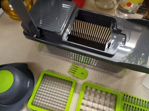 I am amazed at how quickly this veggie chopper has become part of my food preparation. I use it on a regular basis to chop carrots, radishes, cucumbers, zucchini, potatoes, cooked beets, and turn one or a combination of them into ready-to-eat or ready-to-cook form. It's pretty sturdy, too. The blades are quite sharp, necessarily so, so take caution when handling them. On my unit the tiny two-part plastic slider that locks the blades in place came apart and I need to figure out how to reinsert it. But the unit works quite well without this piece. Much recommended.