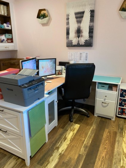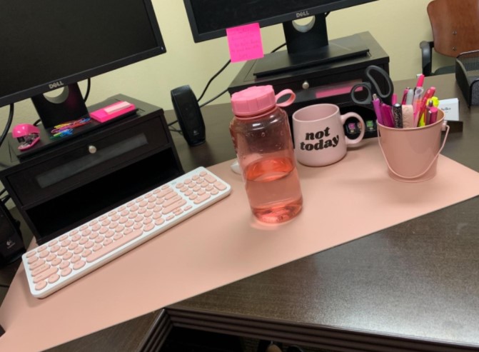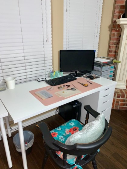 Since quarantine knocked me back to working at home (attorney), and we have a built in desk in the kitchen (we have A home office/music room but it’s not super conducive to my working since my husband also works at home), I use my laptop at home but I like to have the separate mouse and didn’t have a mouse pad.