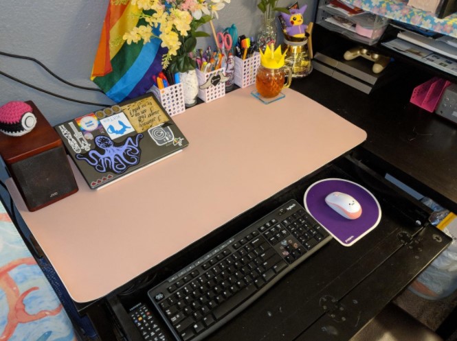 It's kind of like having a giant mouse pad, but I love this. It makes me feel like I have a nicer desk without actually upgrading the desk.