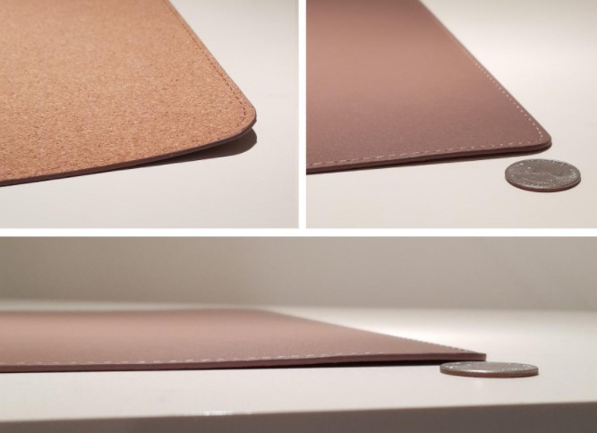 Our Office Desk Pad is easy to carry to set up your workspace, whether you’re traveling from the bedroom desk to the living room coffee table. The mat rolls up easily for an on-the-go space for you and your laptop. And there’s zero bulk — the mat measures just 0.08in in thickness (the same as that of a quarter).