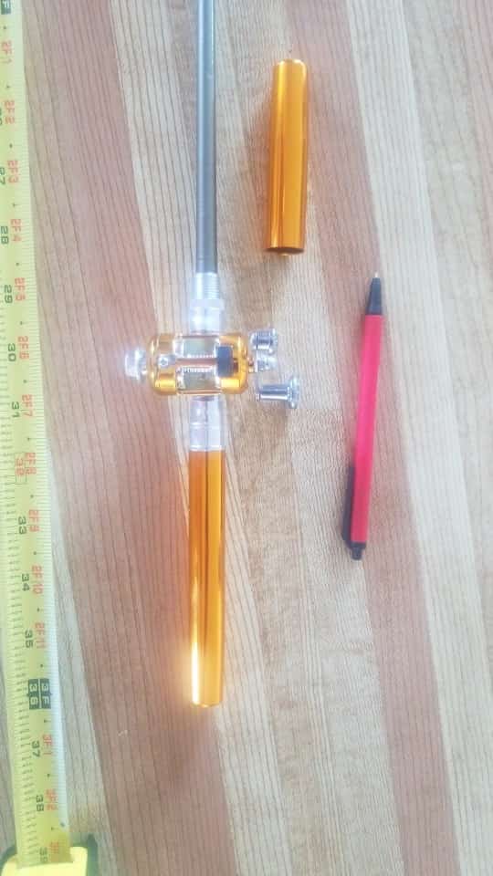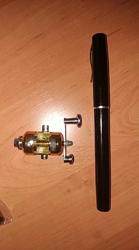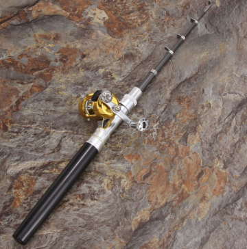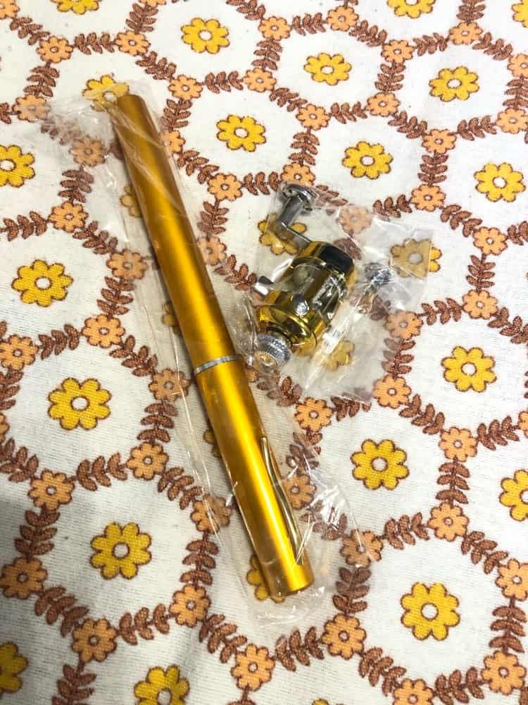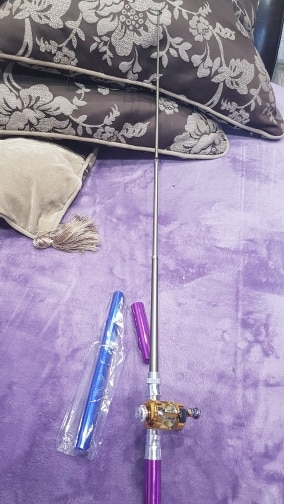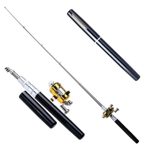 I love the black fishing rod, it looks like a pen and extends into an actual sized fishing rod.. Great product for the money!