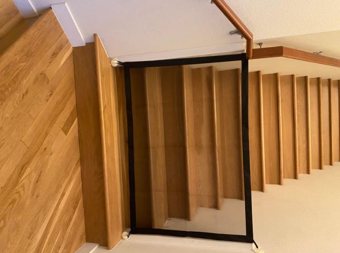 Holy smokes, this gate is awesome. It was so easy to stick the little hooks up and boom!.. it’s up. Looks great and won’t leave marks on my walls like my old wooden gate. Plus it came with extra hooks.