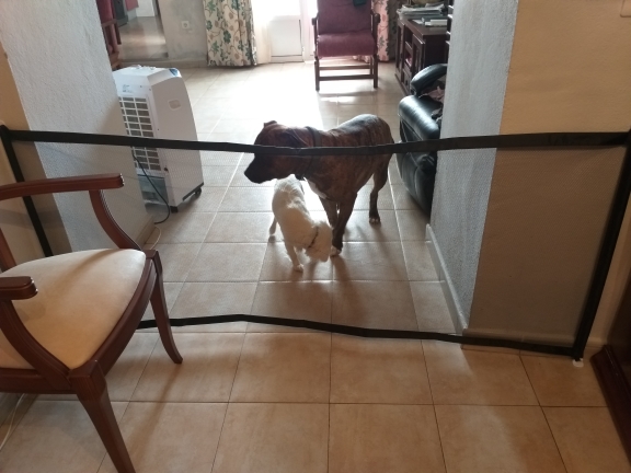 I have an elderly, deaf cat that gets into trouble, and I wanted to block her way into the 2nd floor. I measured my stairs and wanted to use it vertically, but the actual net turned out to be a bit shorter, than I thought. Now my cat actually can squeeze in, so it's not really suitable for cats.