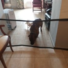 The kitchen is dangerous enough without getting tripped by a little pet. The heavier gates kept falling on my ankles and I worried about the gate falling on the pet all under 5lbs. I am arthritic and in my 60s and had the gate up in minutes. Now everyone is safer and less stress for me.