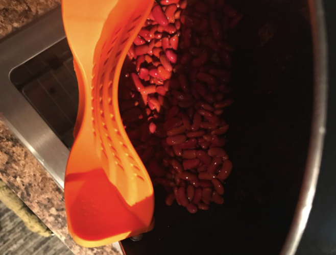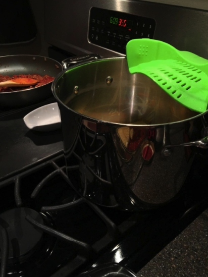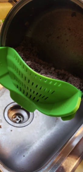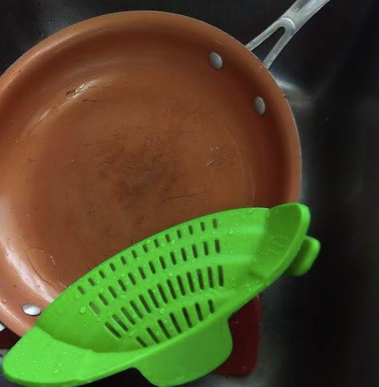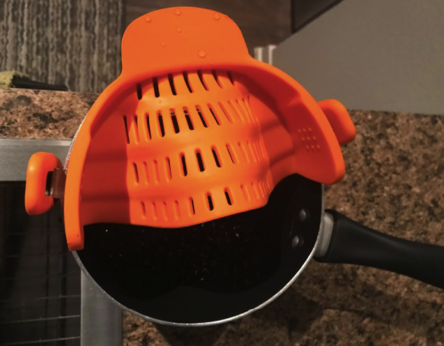 I wasn't really sure about this gadget, but the spouse was always draining some fat from meats in a frying pan so I thought I'd help him out with a fun thing. Turns out I use it more than him and for all my pastas, potatoes, etc. I pretty much gave up on my colanders and other strainers unless it is something very fine I must strain. The thing sticks on pretty much any pot or pan I have and will mostly hold the items in if it isn't too full, even my large pot for noodles. The reason I use it instead of everything else is how easy it is to use and then to clean. My sink doesn't need to be empty to accommodate setting a strainer in it, this tool basically rinses clean with hot water and does not leave pasta bits and potato starches all over like the steel colander or the foldable one I have made of pretty much the same material. Certainly some water is left behind if there is a large volume of stuff in the pot, but setting it back on the hot burner that is now cooling takes care of this perfectly. The compact size of it makes it easy to store and again, to clean! Bonus: it fits the Instant Pot too