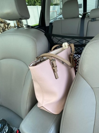 I attached this to the seats as instructed but found that things could fall behind the consol. This was remedied by weaving a ribbon through the mesh and around the hinge to my console. It's make a perfect perch for my purse! The mesh organizer had enough elasticity to push my purse into it and it stays without falling on the floor or getting in the way of me or any passengers! I can also get into my console if needs be! This has been just what I've needed for a long time!!