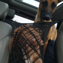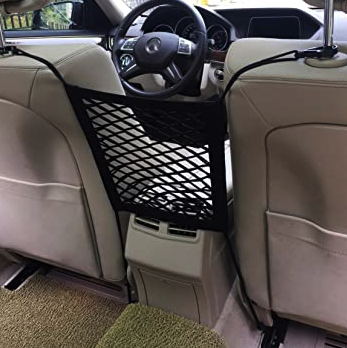 I use this to keep my dogs on the back seat even tho they are harnessed to the seat belt they like to try to get in the front. Also helps keep the car tidy. I put a flat box of tissues in the mesh and poke a tissue through so I have tissues to hand when travelling.