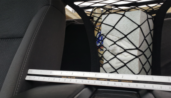 As you can see from the pictures, there's almost a 6 inch gap on both sides of the net which renders it almost useless for keeping my puppers at bay. I figure that with a normal-sized car or small SUV, the seat gap is not a problem as it is with mine. This product is stretched for all its worth in my truck (Silverado). I got tissue and a can of disinfectant in there, but it's t-i-g-h-t. I'm going to use it until it snaps, which looks like it could happen at any moment, honestly. I just hope it doesn't hit me in the process.
