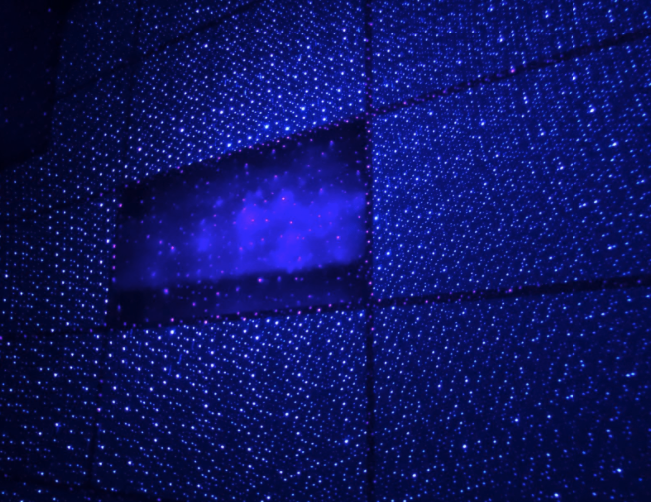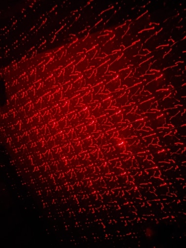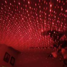 Throws up quite a bit of nice effects wherever it is pointed. The further away from the target the wider the spread of stars and such. Our granddaughter loved the stars on the ceiling effect. It runs quite a long time on a USB battery, so it's extremely portable! I used it during a BBQ party and lit up our outside area. Very cool and well made.