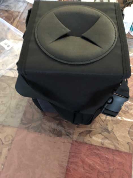 This is a well constructed and sturdy trash bag. The 2 features that I like best are the multiple straps so you have a few different ways to secure it and that it has clips to secure a plastic grocery bag inside for easier clean up. The velcro top with the unique opening allows you to easily place things inside one-handed, but keeps them well contained and out of sight.