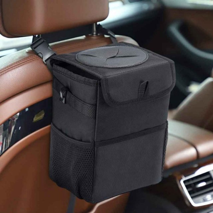 Crafted from quality waterproof oxford cloth, our auto trash can is an absolute handy accessory. Designed with two side pockets, a garbage bag hook, and a velcro closing seal, it’s sturdy and performance-driven to hold up to 1.23 gallons of trash. Plus, a push-seal trash lid helps block any odors from wafting out into the vehicle interior.