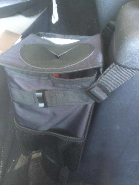 This trashcan works well in our SUV. With three kids and a busy schedule we often eat snacks or food in the car. This is the third trashcan I’ve now bought for a vehicle, and this one they got it right. The size is good and holds quite a bit. The thing I like the most is the top you don’t actually have to undo it or do anything to access the trash can you just push it in the top. My kids broke the last one by stepping on it too many times, and this one actually is elevated off the ground which makes less of a tripping hazard. You can also put a trash liner it so you can just take out the whole bag of trash out quickly and easily. It also had like a bungee cord on it if you didn’t want to use the strap if you wanted to utilize it somewhere else. I put it around my center console so it could be utilized in the backseat.